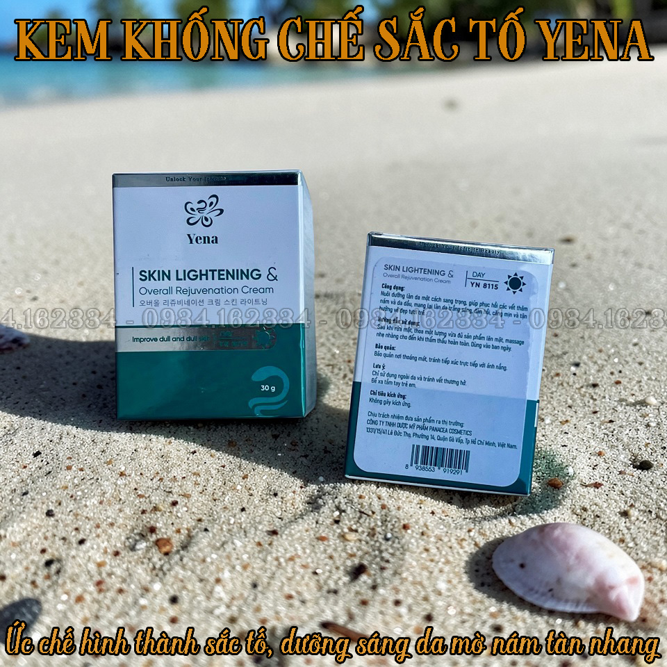 KEM KHỐNG CHẾ SẮC TỐ ỨC CHẾ NÁM - TRẮNG SÁNG DA SKIN LIGHTENING YENA Skin Lightening & Overall Rejuvenation Cream Yena - Trọng lượng 30gr - Sản phẩm của Yena - YN8115 - Mã vạch: 8938553919291 Giá lẻ: 1.200.000 đồng/Hộp Mua sỉ/Đại Lý vui lòng liên hệ 0934.162334