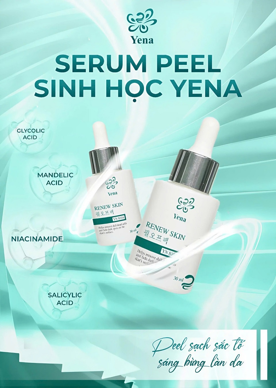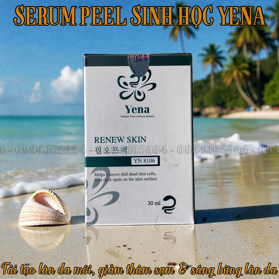 SERUM PEEL SINH HỌC YENA Renew Skin Serum Peel sạch sắc tố, sáng bừng làn da! - Thể tích: 30ml - Sản phẩm của thương hiệu Yena (Công Nghệ Hàn Quốc) - Mã sản phẩm:YN8106 - Mã vạch: 8938553919154 Giá lẻ: 490.000 đồng/Chai Để được ưu đãi giá tốt hoặc mua sỉ vui lòng liên hệ Zalo 0934.162334 Bạn đang gặp tình trạng: Da xỉn màu, sần sùi Mụn ẩn, bít tắc lỗ chân lông Thâm sau mụn lâu mờ Serum Peel Sinh Học Yena chính là giải pháp tái tạo da an toàn – hiệu quả – dễ sử dụng tại nhà!