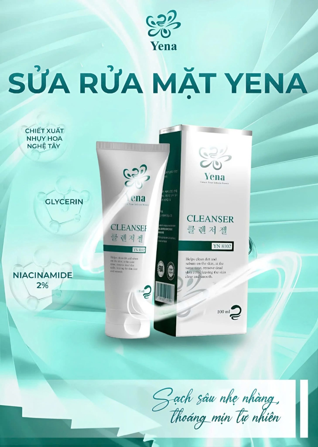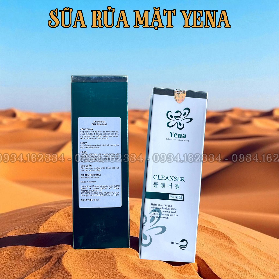 SỮA RỬA MẶT YENA Mã: YN8102 - Thể tích: 100ml - Sản phẩm của thương hiệu Yena - Mã vạch: 8938553919086 Giá lẻ: 290.000 đồng/Tuýp Đại lý/sỉ vui lòng inbox zalo 0934.162334 để shop hổ trợ chiết khấu & giá tốt nhé Công dụng: Làm sạch sâu & tẩy tế bào chết – Quét sạch bụi bẩn, dầu nhờn, giúp da thoáng mịn tự nhiên. Cấp ẩm & khóa nước – Nhờ Niacinamide 2%, da luôn mềm mượt, không lo khô căng. Kháng khuẩn, ngừa mụn – Nhụy hoa nghệ tây giúp da giảm sưng viêm, mờ thâm, mụn đừng hòng "làm tổ"! Dưỡng sáng & cải thiện da – Hỗ trợ đều màu da, chống oxy hóa, da xinh khỏi cần app chỉnh! Rửa mặt chỉ là bước đầu, nhưng chọn đúng sữa rửa mặt mới là chìa khóa giúp da khỏe đẹp dài lâu! Thêm ngay vào routine để cảm nhận làn da "sạch mướt", mịn như da em bé nha các nàng!