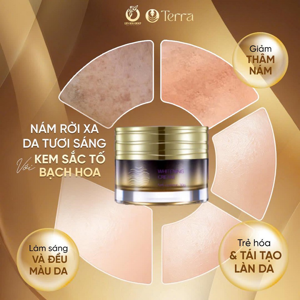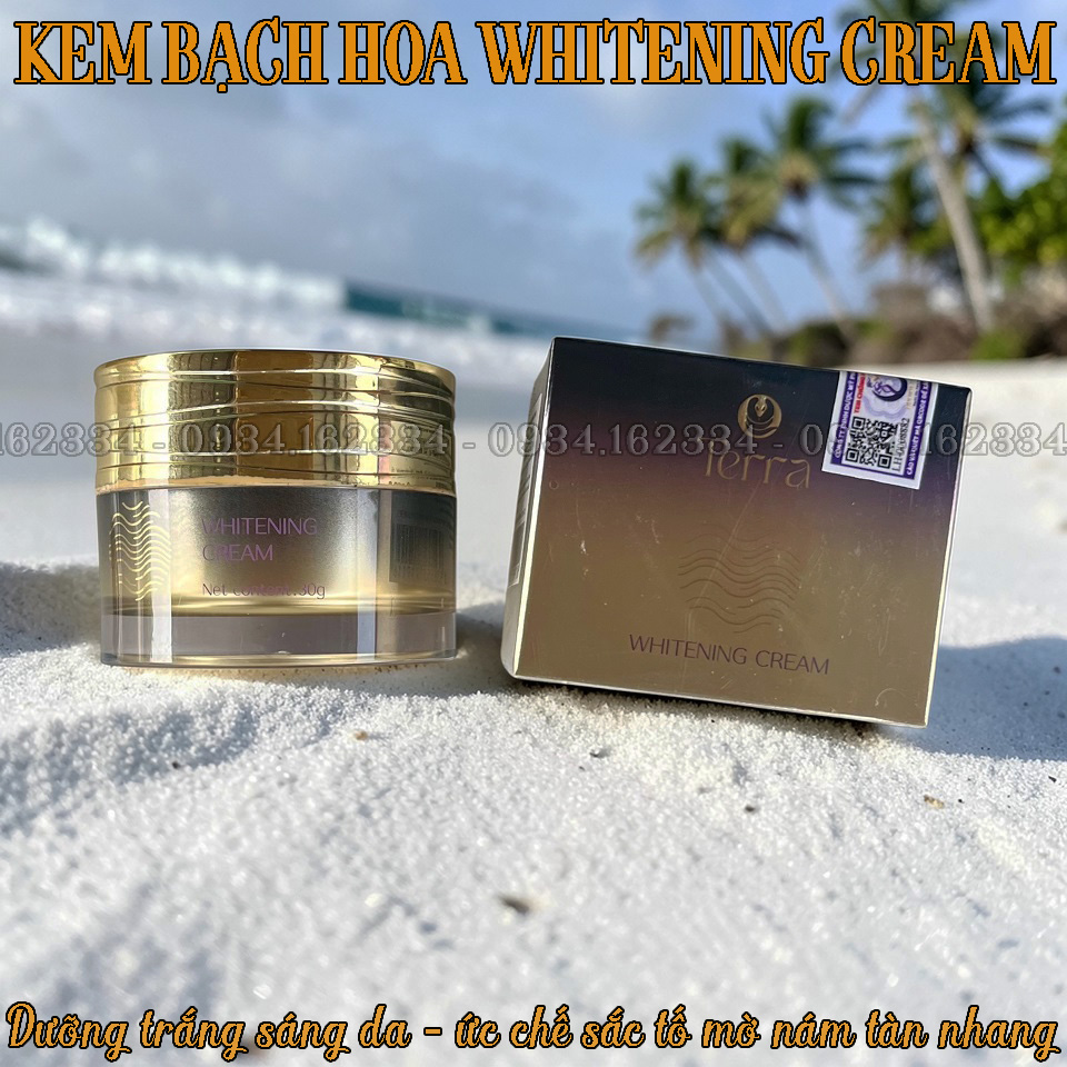KEM SẮC TỐ BẠCH HOA TERRA Whitening Cream - Trọng Lượng: 30gr - Sản phẩm của Terra - Mã vạch: 8938553919116 - Giá lẻ: 1.200.000 đ/Hộp (Mua sỉ/Đại Lý vui lòng liên hệ 0934.162334)