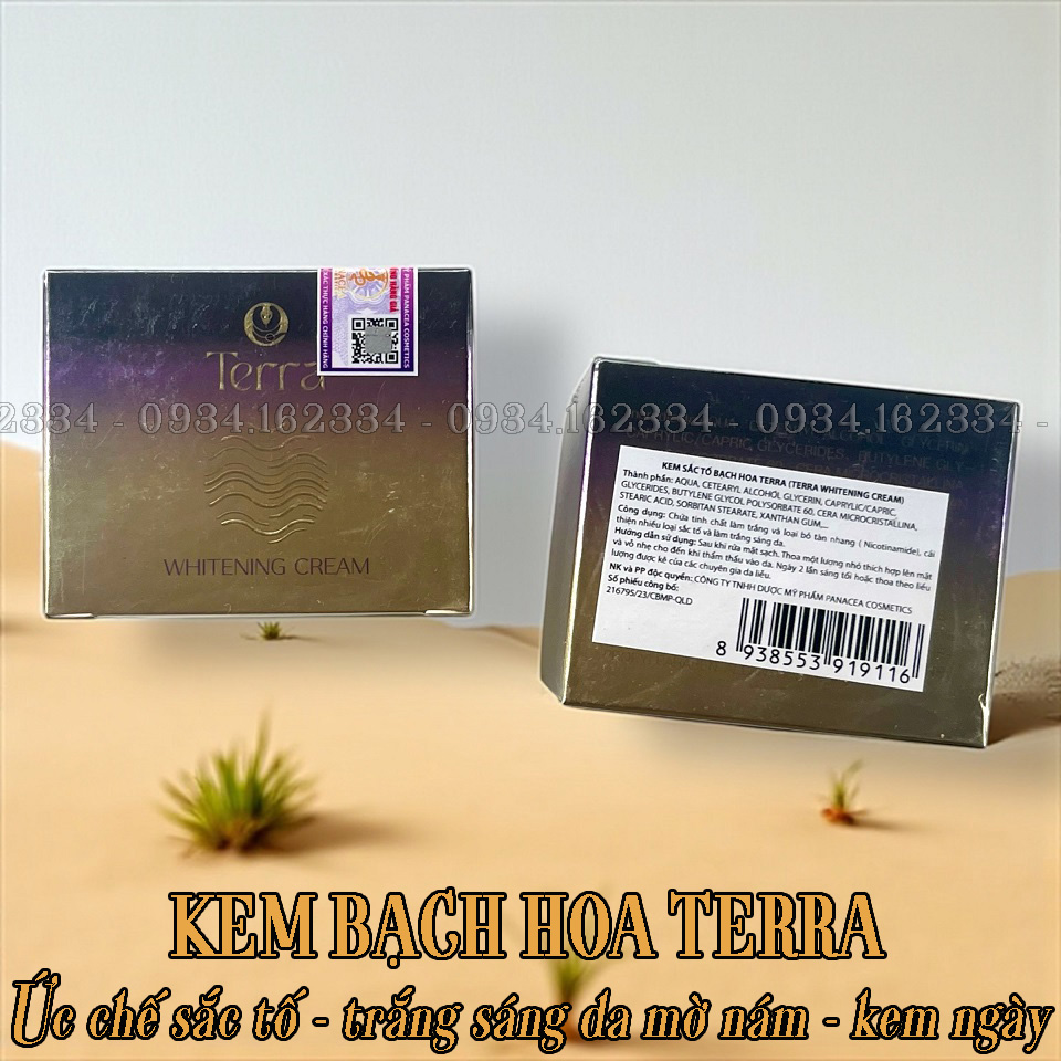 KEM SẮC TỐ BẠCH HOA TERRA Whitening Cream - Trọng Lượng: 30gr - Sản phẩm của Terra - Mã vạch: 8938553919116 - Giá lẻ: 1.200.000 đ/Hộp (Mua sỉ/Đại Lý vui lòng liên hệ 0934.162334)